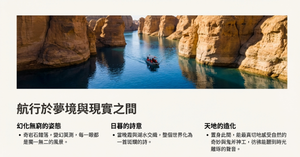 【水上雅丹】過去,人們說起雅丹地貌,首先想到的就是敦煌和新疆的魔鬼城,並不知道在青海柴達木盆地還有這樣一處養在深閨人未識的絕世美景。天至藍,水至碧,土林至奇,情趣至真。一處荒漠中的汪洋,一片蔚藍中的絕美,搖曳著神秘莫測的靈動。此刻,映入你眼簾的是蒼涼、渾厚、深邃;是博大、空靈、超凡脫俗。水上雅丹如同靜謐的海市蜃樓,而整個雅丹林就像外來星球,奇異的沙丘造型,獨特的地理地貌,瞬息萬變的沙漠氣候,更讓魔鬼城的稱謂名副其實。沒有雕琢的虛偽,沒有刻意的炒作,展現在面前的只有憾人的原始之美。這裡有你想像的一切,也有你想像之外的一切,沒有人能在這無與倫比的美麗面前無動於衷。這一片水上雅丹景觀,最完美真實的展現出大地最原生的狀態,土地最本真的黃色、雅丹岩塊深暗的紅色,天空的藍色,雲彩的白色,還有湖水的碧綠清澈,這就是大西北最原始的色彩。隨著光變幻深淺的水色,和沉默聳立的岩塊,以及高飽和度的陽光,都為這裡增添了許多神秘與荒涼壯美,你站在這一片土地上,會為地球這樣樸實的顏色而感慨,會為人類能夠坐擁這樣壯麗的山川而激動。朝陽初生、夕陽西下,這一片景色都會為之產生瑰麗而莫測的變幻,隨時成景,讓人久望不生厭。看了不少照片,似乎都無法完美的展現出那一片景色的壯麗之處,無法描繪初見這裡的震撼之感,這片大地如此美好,讓人不由的感歎,能夠欣賞地球如此美景,才不負上帝賜予人類這樣清晰美麗的雙眼。