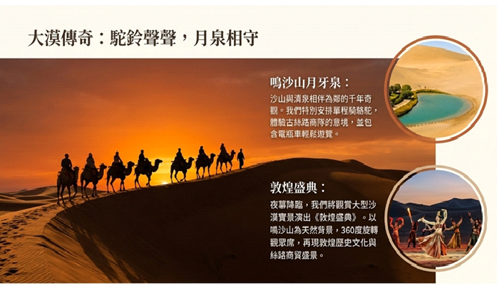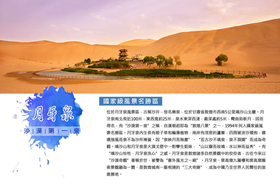 這裡沙山與泉水共處,歷來以「沙漠奇觀」著稱於世,是敦煌的重要景點之一。