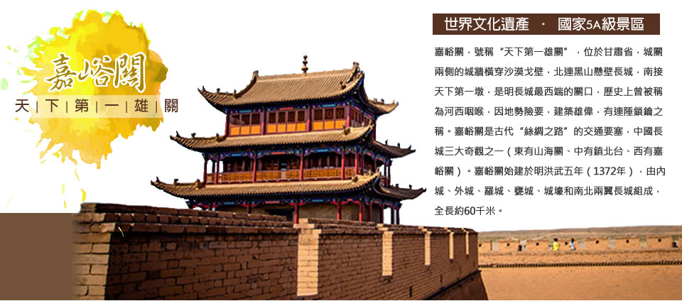 是萬里長城最西端關卡,這個固若金湯的軍事防禦工程的基本體系是由所謂『五裏一隧、十裏一墩、三十裏一堡、百里一城』所組成,地勢的險要,也是造成它地位如此重要的原因。從嘉峪關門出城,城外就是古人所說的西域了。在內地人的眼中西域永遠是一片荒蠻之地。自古以來,從內地走出的漢人習慣了儒家文化文雅恭謙的氛圍。他們走出隴西高原,進入河西走廊,當滿目的荒涼進入視野,便會感懷各種去國離鄉的愁緒。“羌笛何須怨楊柳,春風不度玉門關”。“勸君更進一杯酒、西出陽關無故人”。