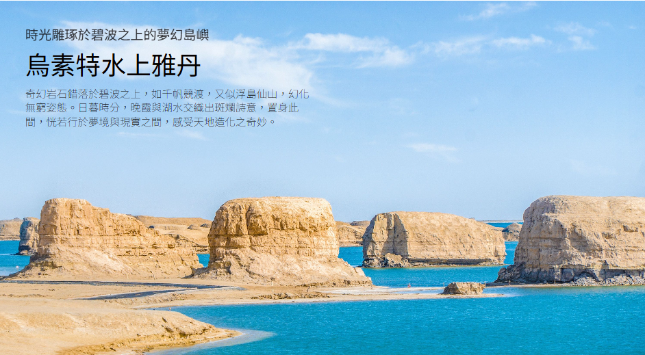 過去,人們說起雅丹地貌,首先想到的就是敦煌和新疆的魔鬼城,並不知道在青海柴達木盆地還有這樣一處養在深閨人未識的絕世美景。天至藍,水至碧,土林至奇,情趣至真。一處荒漠中的汪洋,一片蔚藍中的絕美,搖曳著神秘莫測的靈動。此刻,映入你眼簾的是蒼涼、渾厚、深邃;是博大、空靈、超凡脫俗。水上雅丹如同靜謐的海市蜃樓,而整個雅丹林就像外來星球,奇異的沙丘造型,獨特的地理地貌,瞬息萬變的沙漠氣候,更讓魔鬼城的稱謂名副其實。沒有雕琢的虛偽,沒有刻意的炒作,展現在面前的只有憾人的原始之美。這裡有你想像的一切,也有你想像之外的一切,沒有人能在這無與倫比的美麗面前無動於衷。這一片水上雅丹景觀,最完美真實的展現出大地最原生的狀態,土地最本真的黃色、雅丹岩塊深暗的紅色,天空的藍色,雲彩的白色,還有湖水的碧綠清澈,這就是大西北最原始的色彩。隨著光變幻深淺的水色,和沉默聳立的岩塊,以及高飽和度的陽光,都為這裡增添了許多神秘與荒涼壯美,你站在這一片土地上,會為地球這樣樸實的顏色而感慨,會為人類能夠坐擁這樣壯麗的山川而激動。朝陽初生、夕陽西下,這一片景色都會為之產生瑰麗而莫測的變幻,隨時成景,讓人久望不生厭。看了不少照片,似乎都無法完美的展現出那一片景色的壯麗之處,無法描繪初見這裡的震撼之感,這片大地如此美好,讓人不由的感歎,能夠欣賞地球如此美景,才不負上帝賜予人類這樣清晰美麗的雙眼。